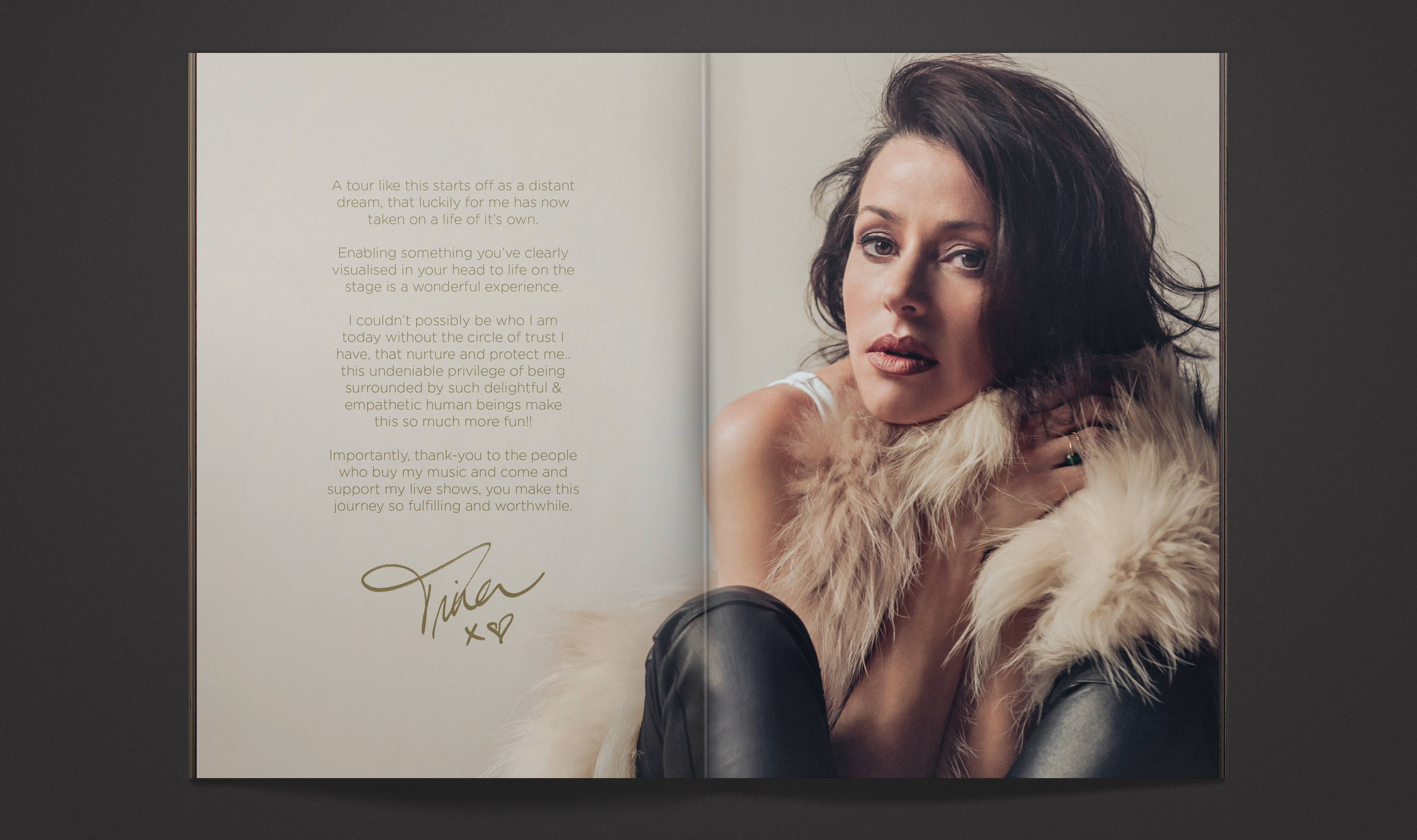 The tour prgramme for Tina Arena’s 2014 Reset Tour was designed using promotional images taken during the Reset album campaign.